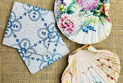 Firstly, think of your surface. Whether you are découpaging a tabletop, a coaster, or creating artwork, make sure your piece is cleaned thoroughly.