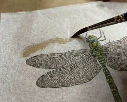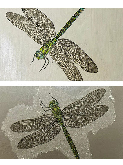 Remember that most napkins are 3-ply, so you’ll need to carefully separate the layers and only use the very top layer. Napkins can be fiddly to cut out as scissors give a straight edge. If, however, you take a small artist’s paintbrush, dip it in water and wet it just outside of the area you want, then tear the image out it gives a much better and quicker result. Napkin and paint chosen? Item cleaned, painted, and smoothed? Now for the découpage.