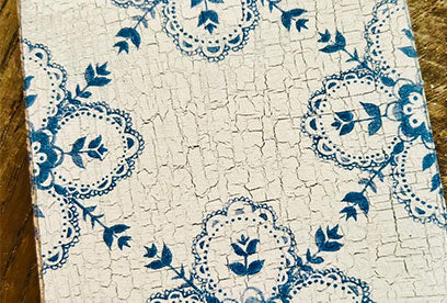 To add an extra dimension, why not use Easy Crackle? Pictured below, I used the off-black shade Panther then Easy Crackle, and then the subtle, off-white shade Virgin to create the crackle effect. Then I used the découpage steps above, all over, to turn an old tile into a fabulous coaster. Happy découpaging!