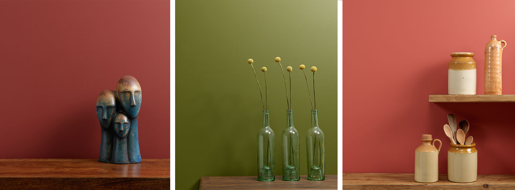 These hues are all about comfort, enveloping rooms in colour that feels lived-in, rather than looked at. To get the look try Frenchic’s Clay Pot, a subtle-soft earthy red with pinkish undertones. Pair it with the contrasting shade of Ducky, a cool duck-egg blue that makes a sophisticated statement. For the perfect mid-toned olive hued muddy brown, Olivia brings a grounded feeling to any room.